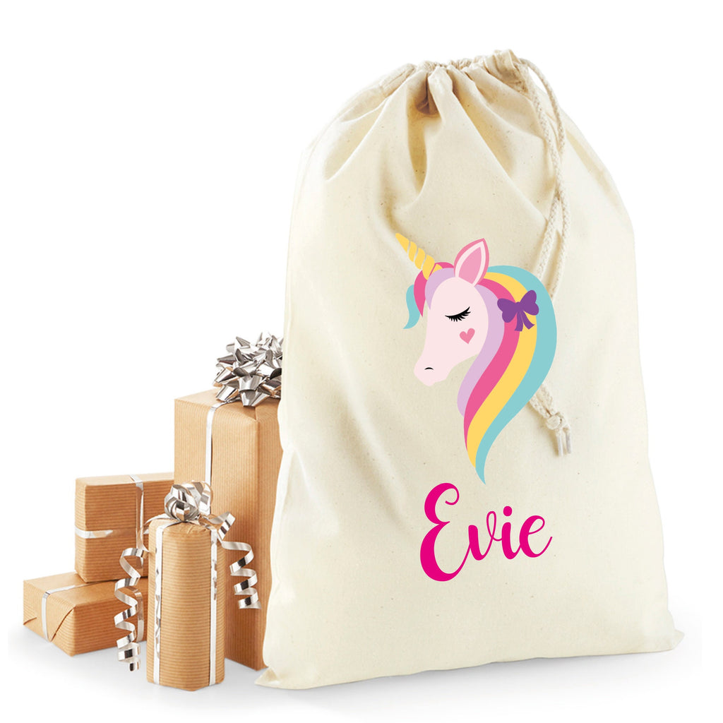 Personalised Santa Sack, Custom Name Unicorn Santa Sack, Christmas Sack, Christmas Eve Box Bag, First Christmas Gift, Unicorn Christmas Sack