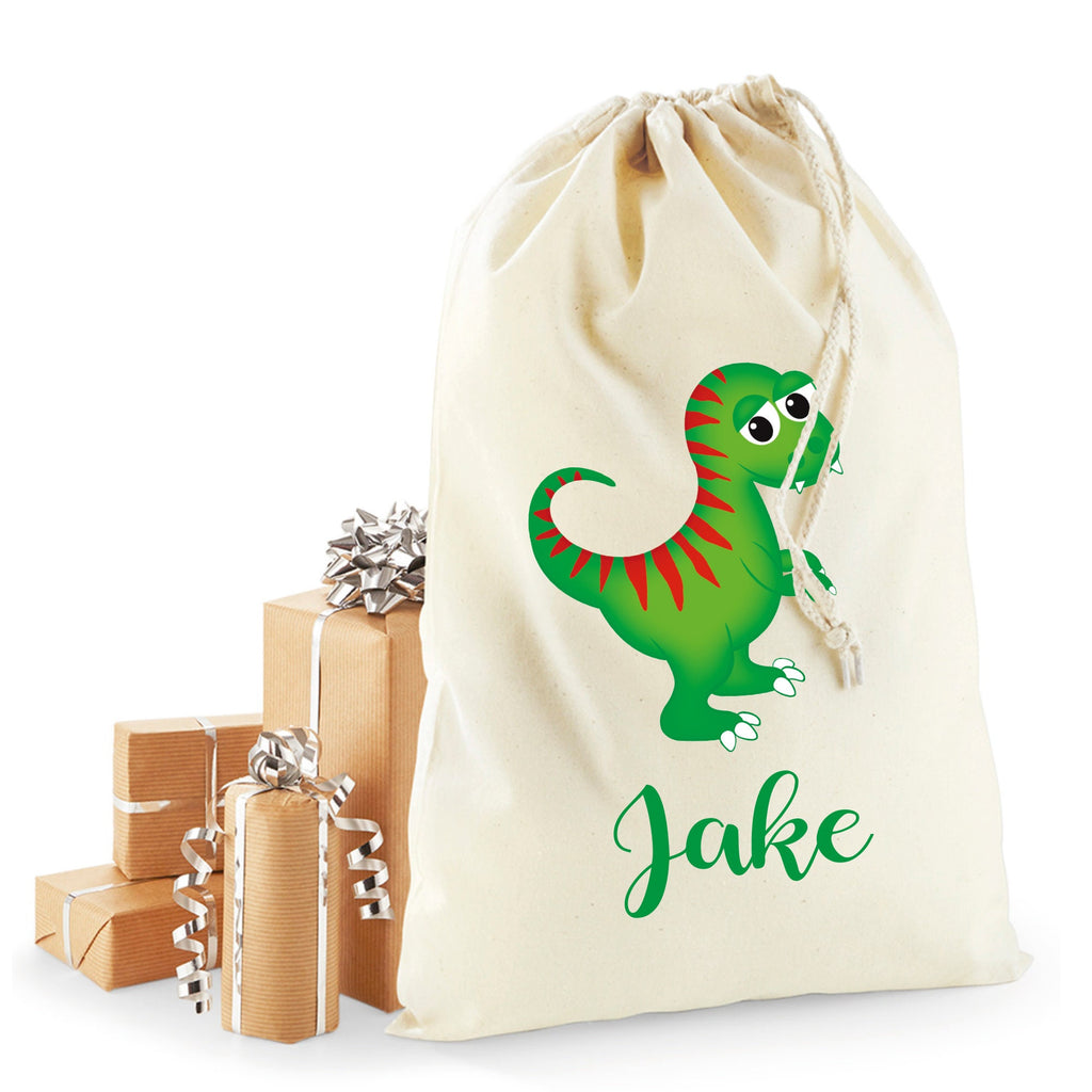 Personalised Santa Sack, Custom Name Dinosaur Santa Sack, Christmas Sack, Christmas Eve Box Bag, First Christmas Gift, Dinosaur Christmas