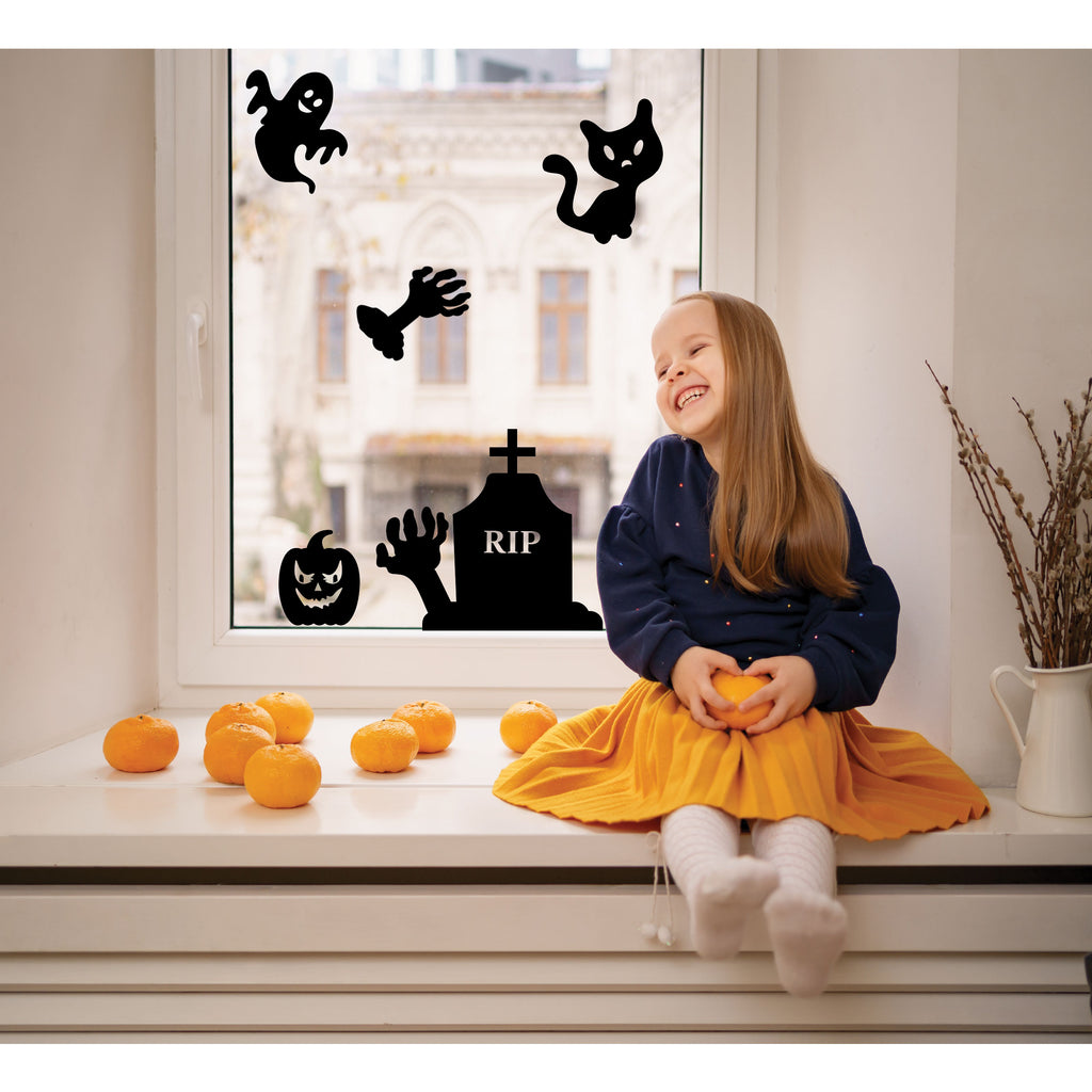 Witch & Cat Window Sticker Set: Halloween Decoration, Autumn Decor