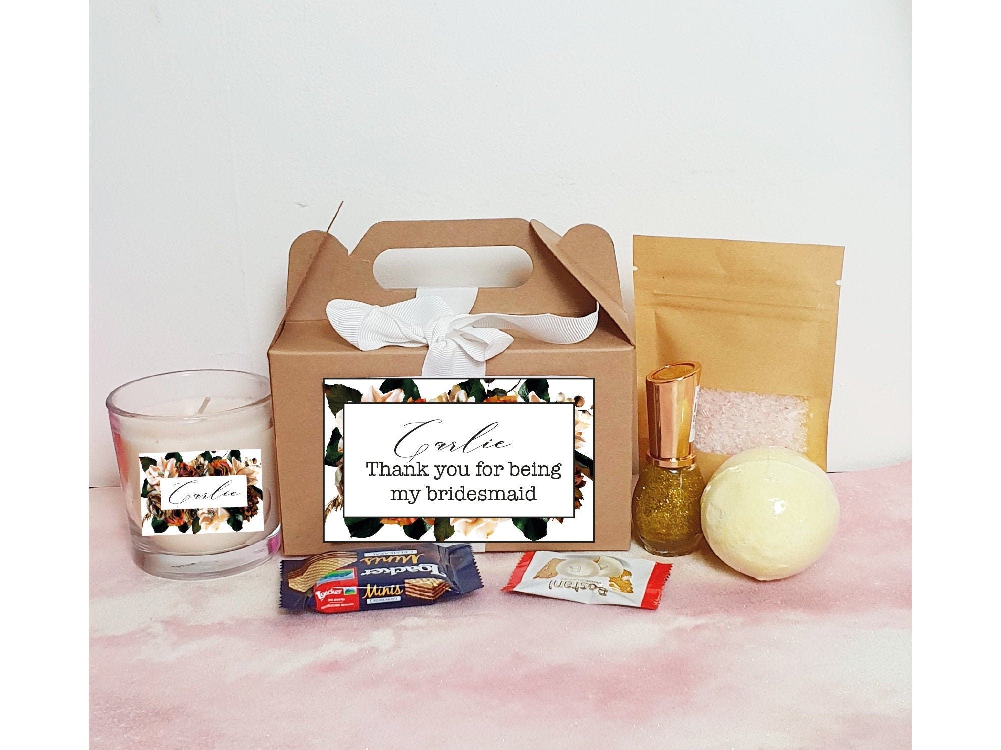 Spa gift set is a beautiful and inexpensive way to thank your girls for being a part of your special day. It can also be customised as a proposal gift for your Bridesmaids, maid of honours, Matrons of Honour.