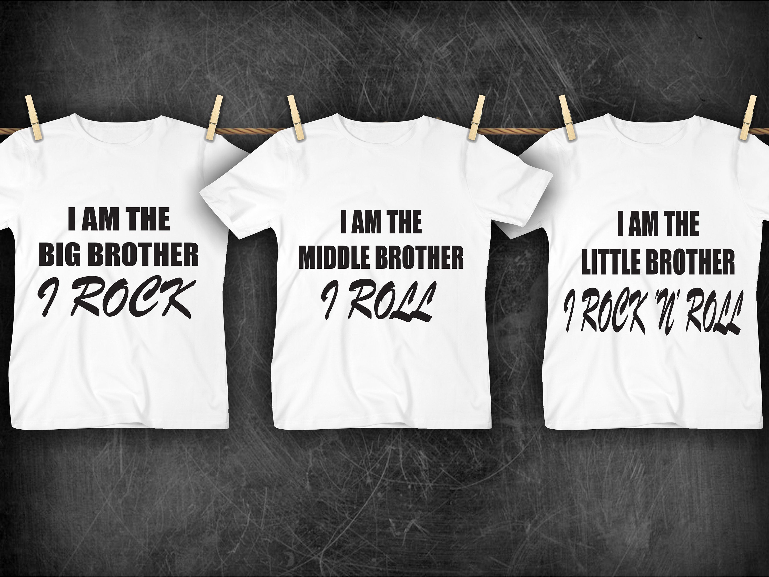 Matching sibling outfits for brothers that h been customised showing the positions in the family.